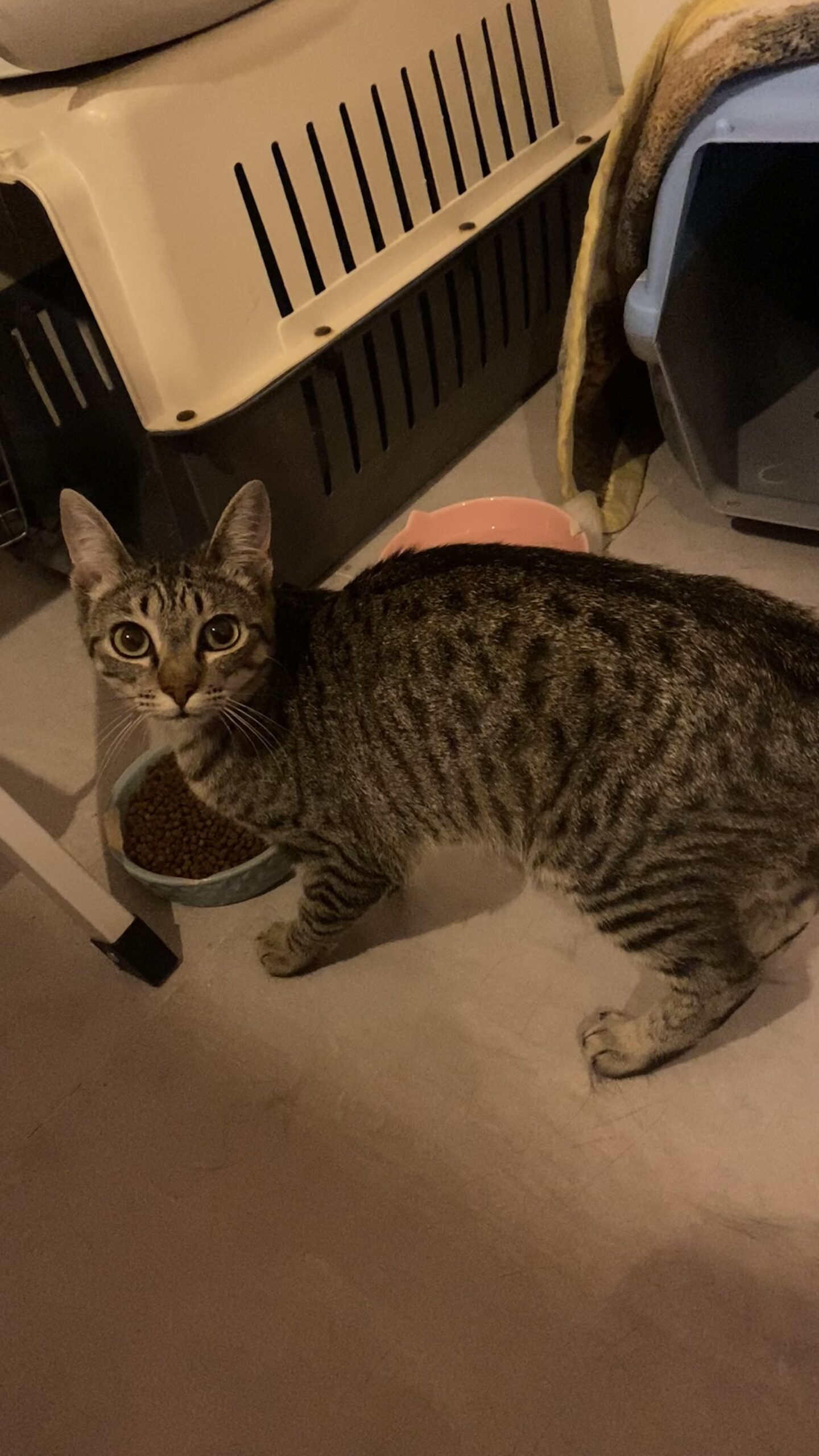 Aparecí debajo de un coche, lleno de grasa de motor por refugiarme del frío en el motor de algún coche. No paraba de maullar buscando que alguien me hiciera caso, pero nadie se paraba a ayudarme hasta que aparecieron las voluntarias de la protectora.